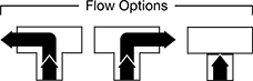 Valves with T-pattern flow can use any port as an inlet or an outlet. Turn the handle to direct flow from the inlet port to either outlet port at full capacity, direct flow to both outlet ports simultaneously at reduced capacity, or shut off flow completely.