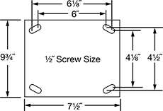 Dia. | Wd. | Mount Ht. | Cap. per Caster, lbs. | No. of | Dia. | Type | Material | Frame Material | Each | |
