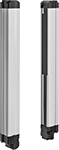 These switches can be configured for complex setups. To selectively allow material to pass through the sensing field, you can program the system to allow one or more beams to be broken without shutting off your machine. To create a perimeter guard that bends around corners, add mirrors to reflect light beams at an angle.