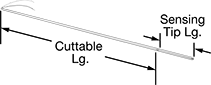 Lg. | Dia. | Cuttable Lg. | Response Time, sec. | Max. Temp., °F | Accuracy | Probe Material | Sensor Type | Sensing Tip Lg. | Lead Lg. | Gauge | Each | |