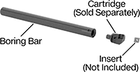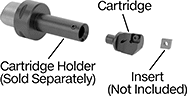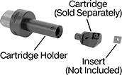 Pair these cartridges with a carbide insert and connect them to your lathe with either a quick-change cartridge holder or boring bar (each sold separately). Cartridge holders mount to quick-change lathe systems, also known as Capto, while boring bars mount with round shank toolholders. All components are coolant-through compatible. They have a hole that delivers coolant from your lathe onto the workpiece to minimize heat.