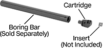 To limit downtime when you’re changing out cutting tools, these boring bars adapt standard lathes for use with quick-change cartridges (sold separately). Rather than removing and replacing an insert while your lathe is stopped, just swap out the cartridges and get right back to work. While one cartridge is in use, you can replace the insert on another, so a fresh cutting tool is always ready to go. Both bars and cartridges have a hole that passes coolant from your lathe onto the workpiece, minimizing heat. Pair the cartridges with carbide inserts.