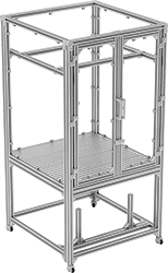 Because the enclosure is made with T-slotted framing, you can mount your robot to the top and make quick positioning adjustments on the rails. You can also attach accessories to any point along the rails. Your cabinet controller mounts right below the enclosure for easy access and organized cord management. Use the swivel casters to move the enclosure where you need it, then lock them in place.