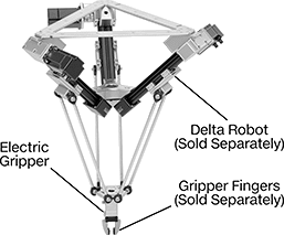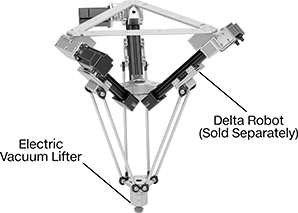 Three lightweight, spider-like arms move in concert—up, down, and across your work surface. You may think of delta robots as filling pill bottles in only a few seconds. These aren’t as fast or precise as those more advanced models, but they're more than capable of placing your parts where you need them.
