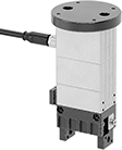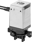 Choose grippers for high-speed picking—they pick up items faster than vacuum lifters. They’re also best for handling items with rough, uneven surfaces. The jaws of these grippers open and close like elevator doors. As the jaws open, they can grasp hollow or open-ended items, such as a tube, from the inside. As the jaws close, they can grasp solid items, such as a metal block, from the outside. Gripping force is adjustable—use it at full force or choose a reduced level with a selector on the body of the gripper. Grippers come with mounts to attach them to the robot and cords for power and control signals. They’re powered entirely by electricity from your robot. You’ll also need fingers (sold separately).