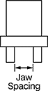 | Maximum | Minimum | Stroke Wd. per Jaw, mm | Jaw Spacing, mm | Max. Cycles per Sec. | Wt. | Lg., mm | Wd., mm | Dp., mm | Each | |