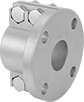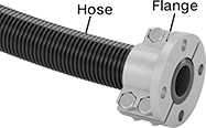 Flanges (sold separately) come in two halves that fit snugly over the hose. They bolt together, so there’s no need for crimping.