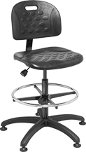 Polyurethane stools resist stains, grease, water, and chemicals better than vinyl stools. Vinyl stools have a padded seat and backrest for comfort.