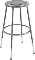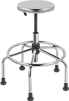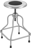 Since these adjustable-height stools withstand chemicals, grease, and repeated washdowns, they are often used in laboratories and food-processing areas. Without a backrest, they fit under tables and workbenches when they're not needed. Turn the seat to adjust the height. The middle of the seat has a nonslip black rubber surface.