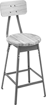 Composite wood stools are economical and the classic shop stool. Wood stools are more durable than composite wood stools. Vinyl stools have padding in the seat and backrest for comfort.