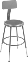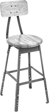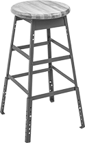 These stools allow you to position the seat at a comfortable height. Remove and reposition the leg bolts to adjust height in 1" increments. A backrest provides support and promotes good posture to reduce back strain. A durable construction makes these stools tough enough to handle demanding shop environments.