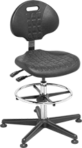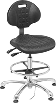 For use in clean rooms, these adjustable-height stools relieve foot and leg strain when working in a standing position by allowing you to rest most of your weight on the seat as you work. Lower clean room ratings indicate fewer contaminants, with Class 1 clean rooms being the cleanest environments.