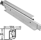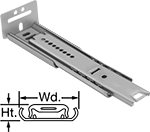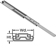 Closed Lg. | Travel Lg. | For Max. Drawer Wd. | Wd. | Ht. | Capacity per Pair, lbs. | Fasteners Included | Screw Size | Pair | |