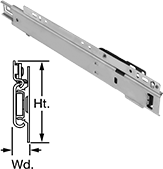 Closed Lg. | Travel Lg. | For Max. Drawer Wd. | Wd. | Ht. | Capacity per Pair, lbs. | Fasteners Included | Screw Size | Pair | |