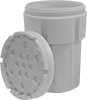 For Drum Cap., gal. | Cap., gal. | Wt. Cap., lb. | Dia. | Ht. | Bottom ID | Inside Ht. | Thk. | Color | Lid Color | Seal Material | Max. Temp. | Space Saving Features | Shipping Std. | Each | |||