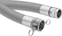 Transfer flour, grain, rice, sugar, and other dry food through lines connected by cam-and-groove fittings. This hose meets strict FDA standards for food safety and 3-A standards for a sanitary design. Made of PVC, it won’t impart tastes or odors on food products. Its interior is smooth, so food won't get caught or build up inside the hose. When vacuum is applied, this hose holds its shape and won't collapse. The spiral reinforcement on the outside increases its flexibility. To connect fittings, insert the plug into the socket and push the levers down.