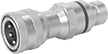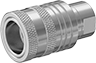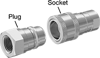 A complete coupling consists of a plug and a socket (both sold separately) that connect and disconnect quickly. Use them if you need frequent access to a hydraulic hose line. All of the Pioneer quick-disconnect plugs are compatible with any of the Pioneer quick-disconnect sockets of the same coupling size, regardless of the pipe size. Plugs are compatible with Parker 4000, Parker 4200, SafeWay S20, and SafeWay S40 sockets. Also known as double shut-off couplings, the plugs and sockets both have a shut-off valve that stops the flow when the coupling is separated. Plugs and sockets are zinc-plated steel, which is strong and durable with fair corrosion resistance.