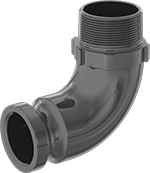 Curved 90° elbow plugs and sockets are also called sweep elbows. Their rounded shape reduces flow disruption by minimizing back pressure on the seal and conserving momentum through the 90° turn. They’re particularly useful when there are solids suspended in the water.