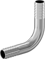 90° elbow sockets with barbed end are also known as CL couplers. Insert the barbed end into plastic or rubber hose and secure with a clamp.