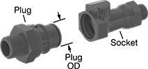 Note: For a complete coupling, order a plug and a socket with the same coupling size.