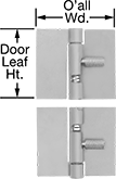 Ht. | Wd. | Ht. | Wd. | O'all Wd. | Leaf Thick. | Range of Motion | Pin Dia. | Pin Travel | Pin Material | Spring Material | Mounting Fasteners Included | Pair | |