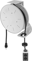 Intended to withstand demanding applications, these reels have a steel housing and an oil- and water-resistant extension cord. The automatic take-up feature maintains constant tension on the extension cord as the spring-driven winding mechanism retracts it. An adjustable ball lock controls how much cord retracts into the reel.