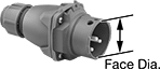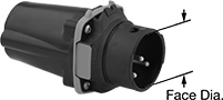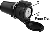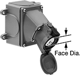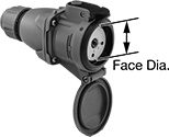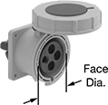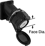 Face Dia. | No. of Poles | No. of Ground Connections | No. of Wires | Industry Designation | Electrical Phase | Current | Voltage | Wire Connection Type | For Wire Gauge | For Cable OD | Temp. Range, °F | Each | ||