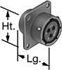 No. of Poles | Voltage | Current, amp | For Wire Ga. | Lg. | Wd. | Ht. | Housing Material | For Panel Cutout Dia. | Temp. Range, ° F | Connector Shell Size | Mil. Spec. | Each | ||