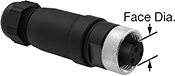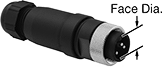 | Number of Poles | Face Dia. | Housing Thread Size | Number of Poles | Face Dia. | Housing Thread Size | Voltage | Current | Housing Material | Temp. Range, °F | Environmental Rating | Specifications Met | Each | |