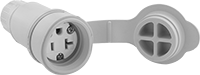 Sockets and receptacles have an attached cover that creates a watertight seal when not in use.