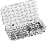 | 216 | 108 | 72 extension springs, 108 compression springs, and 36 torsion springs in music-wire steel, in sizes ranging from 0.125"-1.25" lg., 0.057"-0.36" OD, and 0.006"-0.026" wire dia. | Plastic Box | 0000000 | 0000000 |