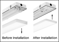Upgrade your traditional fluorescent washdown lights—these LEDs last longer and eliminate the need to replace bulbs. These kits mount to standard 4 ft. long housings with 8 latches, or 8 ft. long housings with 16 latches. They’re ETL listed for use in wet locations. They even work in frigid temperatures down to -40° F.