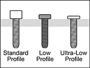 Made of alloy steel, these low-profile screws are nearly twice as strong as their stainless steel counterparts. With half the height of a standard socket head, these low-profile screws fit in tight spaces, but are weaker than standard socket heads. Length is measured from under the head.