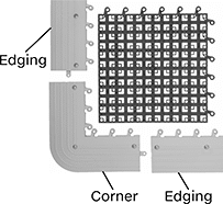 Combine edging and corner pieces (sold separately) to create a tapered edge around mats. Edging and corner pieces have male tabs and female slots for installation along any side of the mat. Cut off tabs to connect to the male edge of the mat.