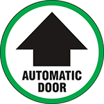 Temperature check decals alert people to stop and get tested for a fever before passing, in order to prevent the spread of illness.