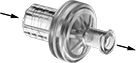 Also known as luer lock couplings, quick-turn fittings consist of a plug and a socket that connect with a half turn, so you can easily connect and disconnect your line. These valves open to allow flow in one direction and close when flow stops or reverses. The clear body allows you to visually inspect flow and debris accumulation.
