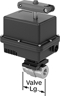 | Pipe Size | Gender | Thread Type | Port Type | Flow Coefficient (Cv) | Max. Pressure | Max. Steam Pressure | Pressure Drop | Actuation Time, sec. | Temp. Range, °F | Valve Lg. | Lg. | Ht. | Each | |