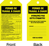 Guide workers through a safety checklist before welding, grinding, cutting, or other work involving fire or sparks. Write on these tags using a pencil, pen, or permanent marker.