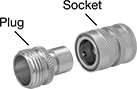 Couplings with shut-off valve have a valve in the socket that stops the flow of water when the coupling is separated.