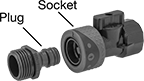 Use these couplings if you need frequent access to a garden hose line—a complete coupling consists of a plug and a socket that connect and disconnect quickly. The compact design makes these couplings sleeker and easier to handle than cam-and-groove garden hose couplings. Couplings have a sleeve-lock socket. Connect by sliding back the sleeve on the socket, inserting the plug, and releasing the sleeve. To disconnect, slide the sleeve back and pull out the plug.