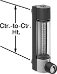 Measuring Range, mm | Flow Range, cc/min. | Overall Ht. | Ctr.-to-Ctr. Ht. | Accuracy | Max. Pressure | Max. Temp., °F | Body Material | Seal Material | Case Material | Window Material | Mounting Orientation | Features | Each | |