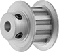 Anodized aluminum has good corrosion resistance. Pulleys are MXL series (miniature extra light) and have trapezoidal teeth. The teeth match up with the grooves along the inside diameter of a timing belt in order to move components forward or backward. Select a pulley with a maximum belt width that’s the same or larger than your timing belt width.
