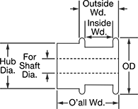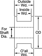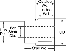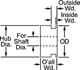 OD | Number of Teeth | Pitch | For Shaft Dia. | Bore Type | Inside Wd. | Outside Wd. | Overall Wd. | Pitch Dia. | Fabrication | Material | Hub Dia. | Each | |