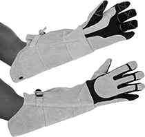 Deerskin gloves are flexible and form-fitting. If they happen to get wet, they’ll dry soft. Gloves with foam forearm padding let you lean against hot surfaces as you weld.