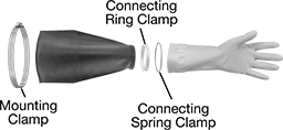 For applications that require frequent glove changes, the sleeves stay connected to the glove box so you can quickly change the size or type of glove being used. Use these gloves in glove boxes to safely handle hazardous substances or avoid contaminating sensitive materials. They fit 8" diameter glove box access holes. Attach gloves to sleeves using the included sleeve-to-glove connecting spring clamp and sleeve-to-glove connecting ring clamp. Attach sleeves to a glove box using glove box mounting clamps (sold separately).