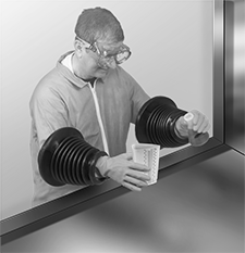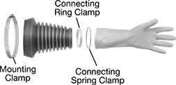 The accordion design prevents the sleeve from collapsing and allows more air circulation. For applications that require frequent glove changes, the sleeves stay connected to the glove box so you can quickly change the size or type of glove being used. Use these gloves in glove boxes to safely handle hazardous substances or avoid contaminating sensitive materials. They fit 8" diameter glove box access holes. Attach gloves to sleeves using the included sleeve-to-glove connecting spring clamp and sleeve-to-glove connecting ring clamp. Attach sleeves to a glove box using glove box mounting clamps (sold separately).
