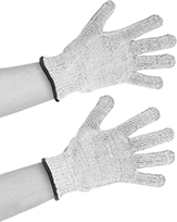 ANSI cut ratings reflect the amount of force required to cut through them with a razor blade. Gloves rated A4 are good for jobs involving sharp-edged materials such as sheet metal and glass. Cotton-blend gloves are absorbent, so oil and grease won’t build up on the surface and make them slippery. Gloves with Kevlar or aramid are resistant to flames.