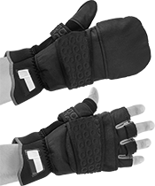 These mitts can be worn as mitts or open-fingertip gloves. A fleece lining keeps your hands warm when working with cold objects or in cold weather.