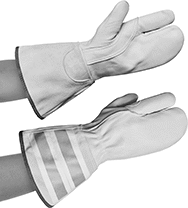 Made for outdoor utility work, these mitts fit over your coat sleeves to shield you from arc flashes and harsh winter weather. They offer better arc protection than gloves but aren’t ideal for handling small parts. A separated index finger helps improve grip when you do need to handle smaller items. Packed with insulation to keep you warm and protect you from flames, they also have a waterproof lining to keep you dry.