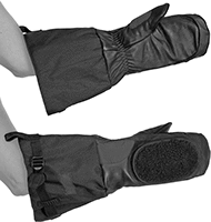 Originally designed for arctic winters, these mitts protect your hands in temperatures as low as -45° F. Mitts keep your hands warmer than gloves but make it more difficult to handle objects. These mitts have an extra wide cuff that goes over your jacket sleeves so that no skin is exposed to cold. Tighten the strap to secure them in place. A hook and loop fleece patch sticks on the back—use it to wipe your glasses or warm up your cheeks without taking off the mitt. The fleece lining is removable for easy cleaning.